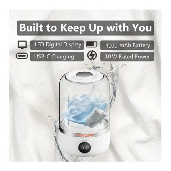 به طور خلاصه، مینی واش قابل حمل Porodo مدل 1.2L، با بهرهگیری از طراحی مدرن، ظرفیت مناسب، باتری با طول عمر بالا و قابلیت شارژ USB، ابزاری کارآمد و نوآورانه برای شستوشوی بهینه البسه ظریف و کوچک در هر زمان و مکانی محسوب میشود و تجربهای آسوده و کارآمد از شستوشو را برای شما به ارمغان میآورد.